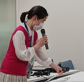 「皆様、お疲れ様でした。従来、5時間程度かけて行っている講義をコンパクトにまとめてお話したので、十分伝えきれるか心配していましたが、皆様、実技では学んで頂いた介助方法を的確に再現され、極めてスムーズに介助されていました。
